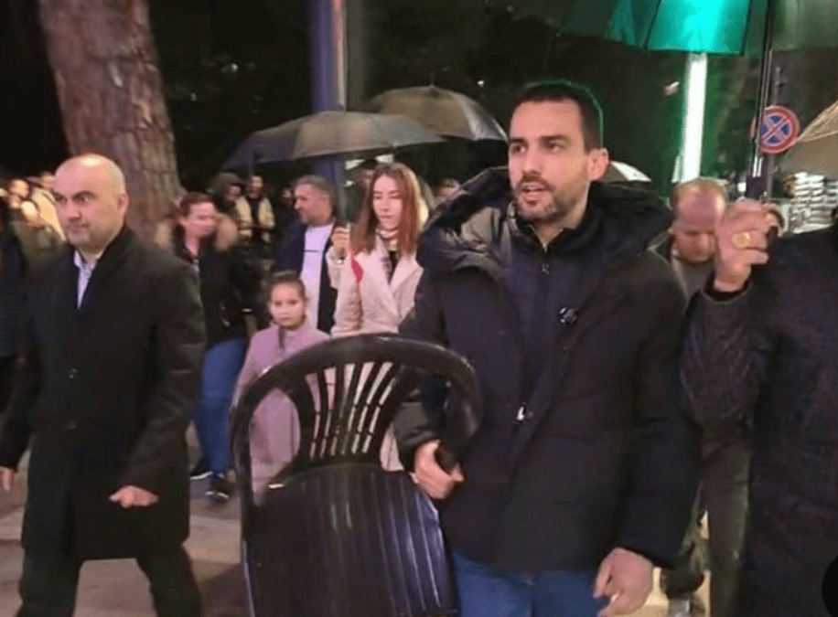 Ashtu siç kishte paralajmëruar Adriatik Lapaj pasi është larguar nga ambientet e spitalit, u shfaq duke mbajtur një karrige në dorë, me të cilën është drejtuar drejt Kryeministrisë.