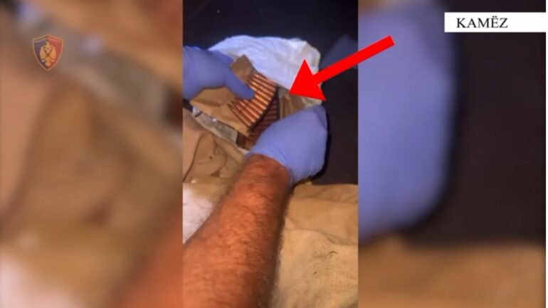 Në vijim të veprimeve procedurale u kryen kontrolle në automjetin dhe në banesën e 21-vjeçarit, ku u gjetën 1 armë zjarri pushkë me municion, 1 armë e ftohtë (thikë), pranga si të Policisë dhe 1 kapuç për maskim.