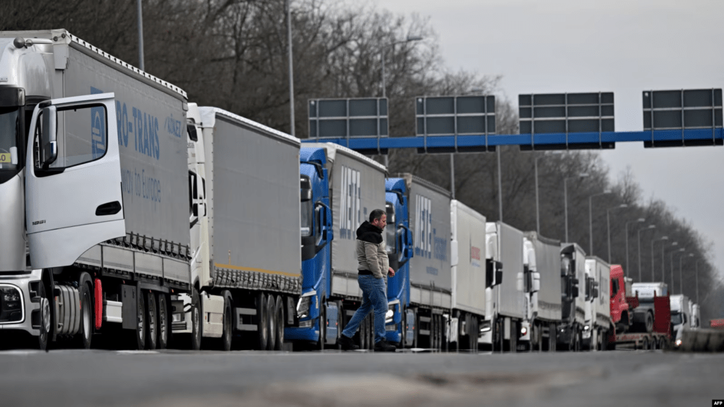 Transportuesit e mallrave janë duke protestuar kundër atyre që i konsiderojnë procedura të ashpra për të hyrë në Zonën Schengen, të cilat, sipas tyre, ua kanë shkurtuar kohën e qëndrimit në shtetet e Bashkimit Evropian.
