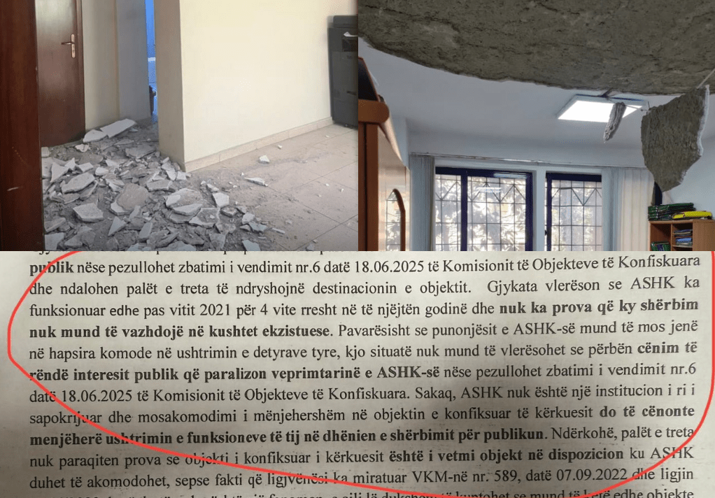 Në foto keni (mos)arsyetimin e gjykatës Balliut si edhe situatën e godinës së vjetër të ASHK-së, e cila mesa duket për Balliun është normale për sa kohë nuk ka viktima.