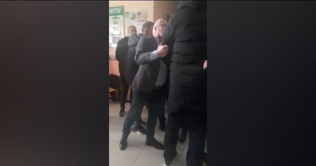 Siç dallohet edhe në video, ai shihet teksa tërheq me forcë për krahu një prej personave që ndodhej brenda qendrës së votimit.