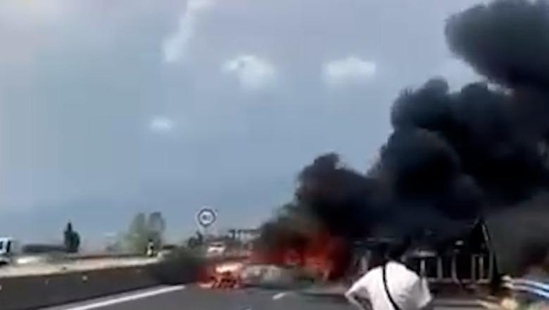 Raportohet se shoferi bullgar i kamionit është plagosur rëndë. Zjarri u përhap edhe përreth Autostradës Egnatia, në zonat rurale.