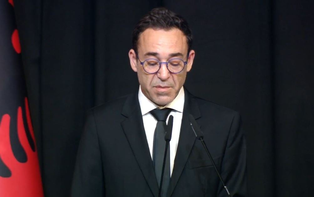 Sokol Nano, djali i ish-kryeministrit Fatos Nano, mbajti një fjalë të shkurtër të ndjerë gjatë ceremonisë së lamtumirës për të atin.