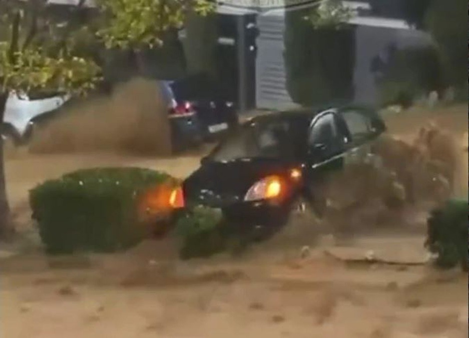 Në Ano Glyfada erdhën pamje tronditëse dhe gati apokaliptike. Rruga kryesore u shndërrua në lumë dhe rrëmbeu makinat dhe gjithçka tjetër që lundruan.