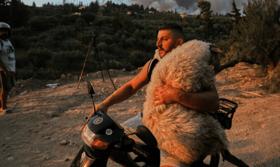 Banorët kanë shpëtuar bagëtitë e çdo gjë të gjallë duke i marrë në krah për t’i larguar nga zjarret. Fotot nga Akaia kanë bërë xhiron e botës.