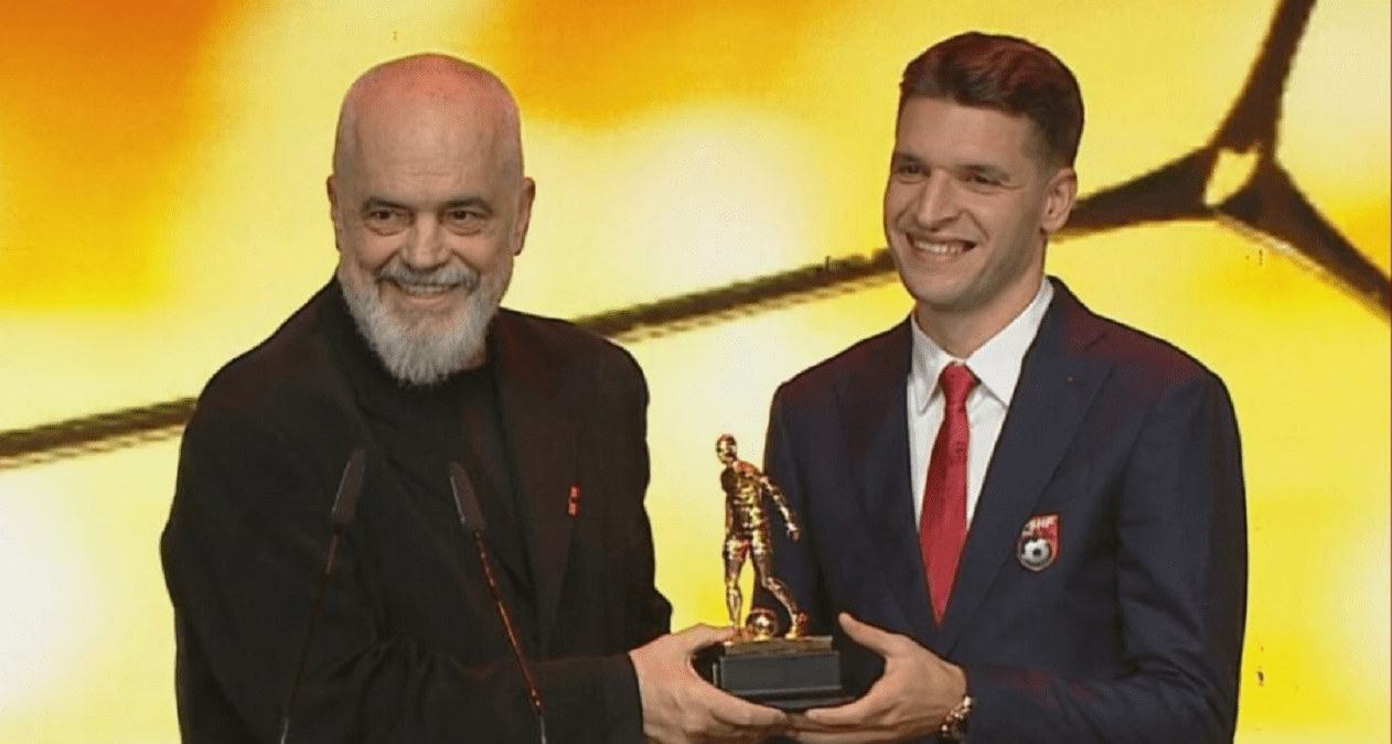 “Si nuk i dhatë asnjë votë Armand Dukës?! Është kënaqësi që ta lexoj emrin si lojtari i vitit nga Kombëtarja. Duke të falënderuar për forcën dhe shembullin që jep në fushë. Të falënderoj që na bëre të harrojmë Lorik Canën. E fute te pensionistët që del këtu dhe përshëndet. Të uroj më shumë forcë dhe vullnet për të rritur çunat në prapavijë”, tha Rama.