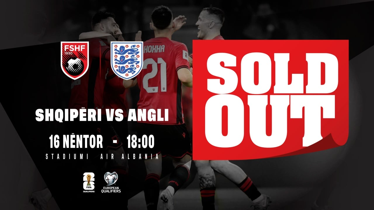 Federata e Futbollit njofton se janë shitur të gjitha biletat e ndeshjes Shqipëri – Angli, e vlefshme për kualifikueset e Kampionatit Botëror 2026.