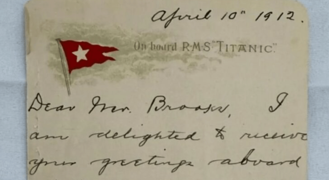 Letra mban datën 10 prill 1912, ditën kur ai hipi në Titanikun në Southampton, dhe pesë ditë para se të fundosej pasi goditi një ajsberg në Atlantikun e Veriut.