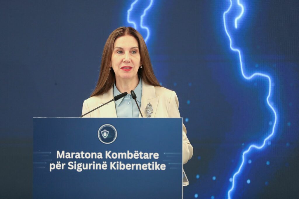 Ministrja e Arsimit Mirela Kumbaro mbajti fjalën përshëndetëse në finalen e maratonës së Sigurisë Kibernetike, organizuar nga Autoriteti Kombëtar për Sigurinë Kibernetike, ku finalistët ishin kryesisht nxënës dhe studentë.