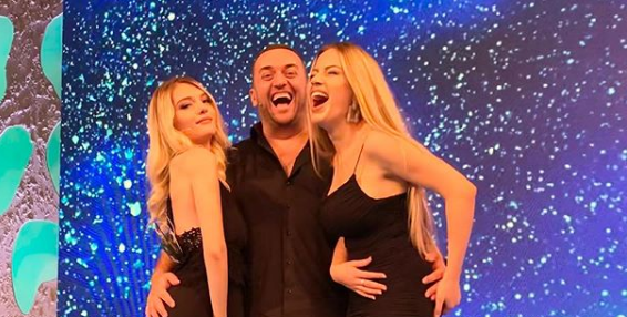 Ai ka pozuar në mesin e dy vajzave simpatike të programit “Çifti i lumtur”, duke i përqafuar ato me duart që kanë rrëshkitur disi poshtë belit.