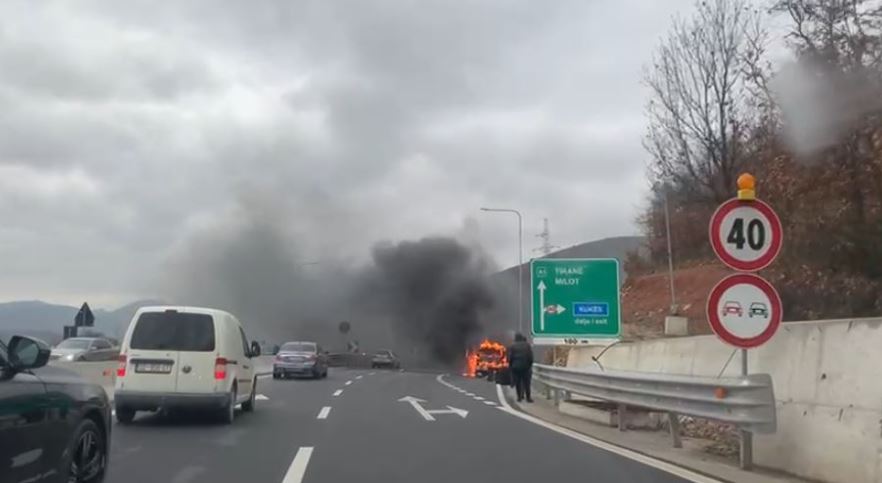 Një furgon është përfshirë nga flakët këtë të shtunë në rrugën e Kombit në segmentin Milot-Morinë.