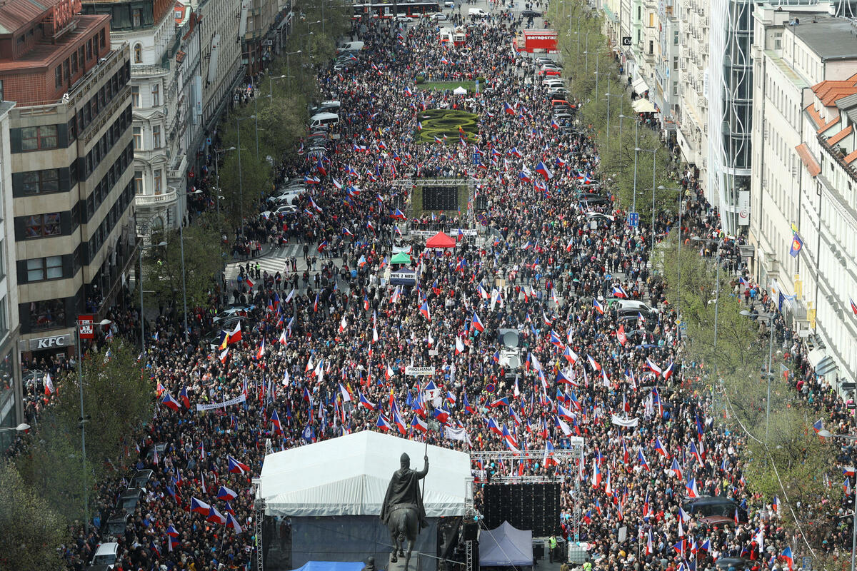 Demonstrata antiqeveritare u organizua në sheshin “Wenceslas” nga partia Populiste jashtëparlamentare Ligj, Respekt, Profesionalizëm, e udhëhequr nga avokati Jindrich Reichl.