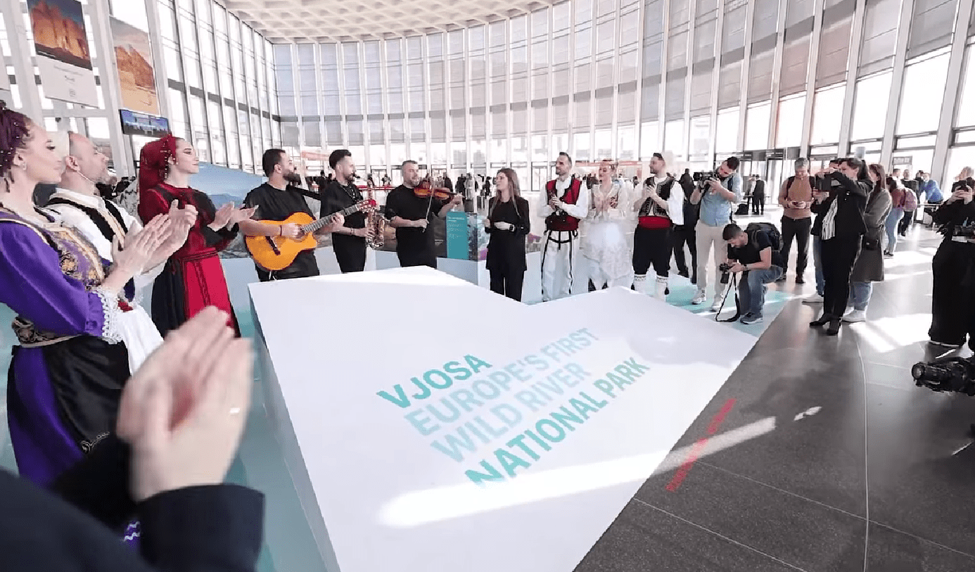 Kryeministri Edi Rama vijon që të postojëp video nga panairi global i turizmit në Berlin. Rama shkruan se instalacioni i Vjosës, përshëndetja e parë drejt stendave shqiptare në eventin global të turizmit. ”Nga Berlini ku Instalacioni i Vjosës në hyrje të panairit është përshëndetja e parë drejt stendave shqiptare në eventin global të turizmit, ITB Berlin”,-shkruan Rama.