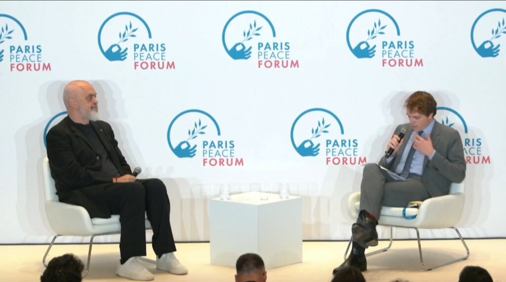 Kryeministri Edi Rama mori fjalën e tij në Forumin e Paqes në Paris, nismë e presidentit Emmanuel Macron, ku personalitete nga e gjithë bota diskutojnë rreth bashkëpunimit ndërkombëtar dhe mënyrave për të promovuar paqen.