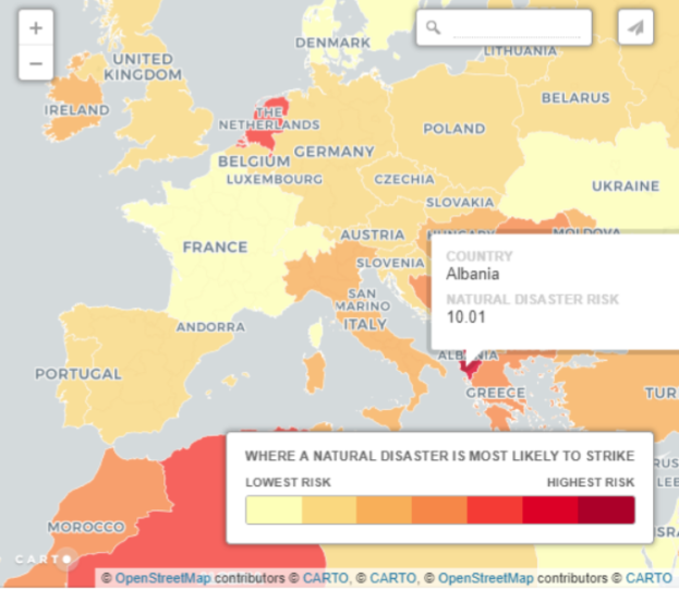 Sipas një raporti të fundit nga dy shkencëtarë amerikanë, vendi vlerësohet me një normë risku prej 10 për qind, më e larta në të gjithë Europën, e vetmja me ngjyrë të kuqe.
