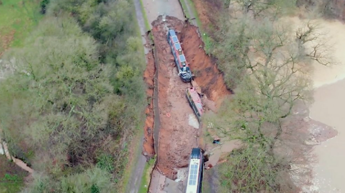 Një incident i madh është deklaruar në Shropshire të Anglisë, pasi në një segment të Kanalit Llangollen, pranë Whitchurch, është shfaqur një vrimë gjigante si pasojë e një dështimi të argjinaturës. Shembja ka bërë që uji të rrjedhë drejt fushave përreth, duke lënë pas një hendek të thellë dhe duke shkaktuar dëme të konsiderueshme.