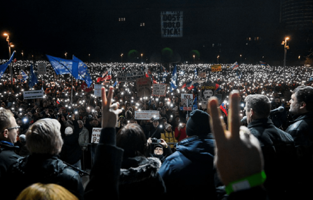 “Sllovakia është Europa”, brohoritën turmat në kryeqytetin Bratislavë, së bashku me thirrjet “boll me Fico”.