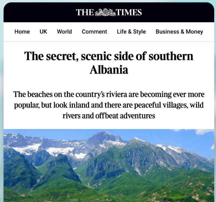 Autorja e artikullit, Laura Sanders u bën thirrje lexuesve britanikë të eksplorojnë jugun e Shqipërisë, duke zbuluar thesare të fshehura dhe pamje piktoreske. Ajo shkruan se ndonëse plazhet e Rivierës Shqiptare po tërheqin gjithnjë e më shumë vizitorë, udhëtarët që zgjedhin të shkojnë më në thellësi të vendit do të gjejnë fshatra të qetë, lumenj të paprekur dhe aventura unike.